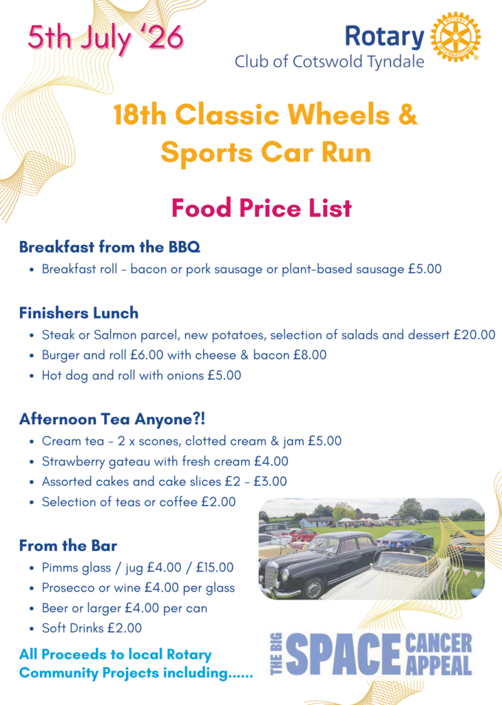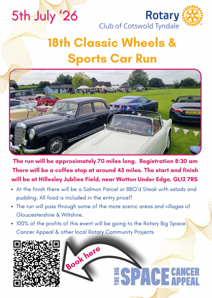 The Rotary Club of Cotswold Tyndale invites you to enter the Classic Wheels & Sports Car Run 2026.