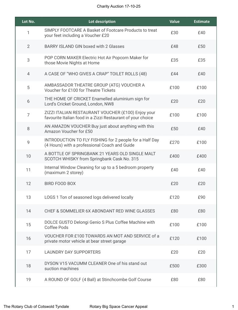 CHARITY AUCTION Friday 17th October 2025